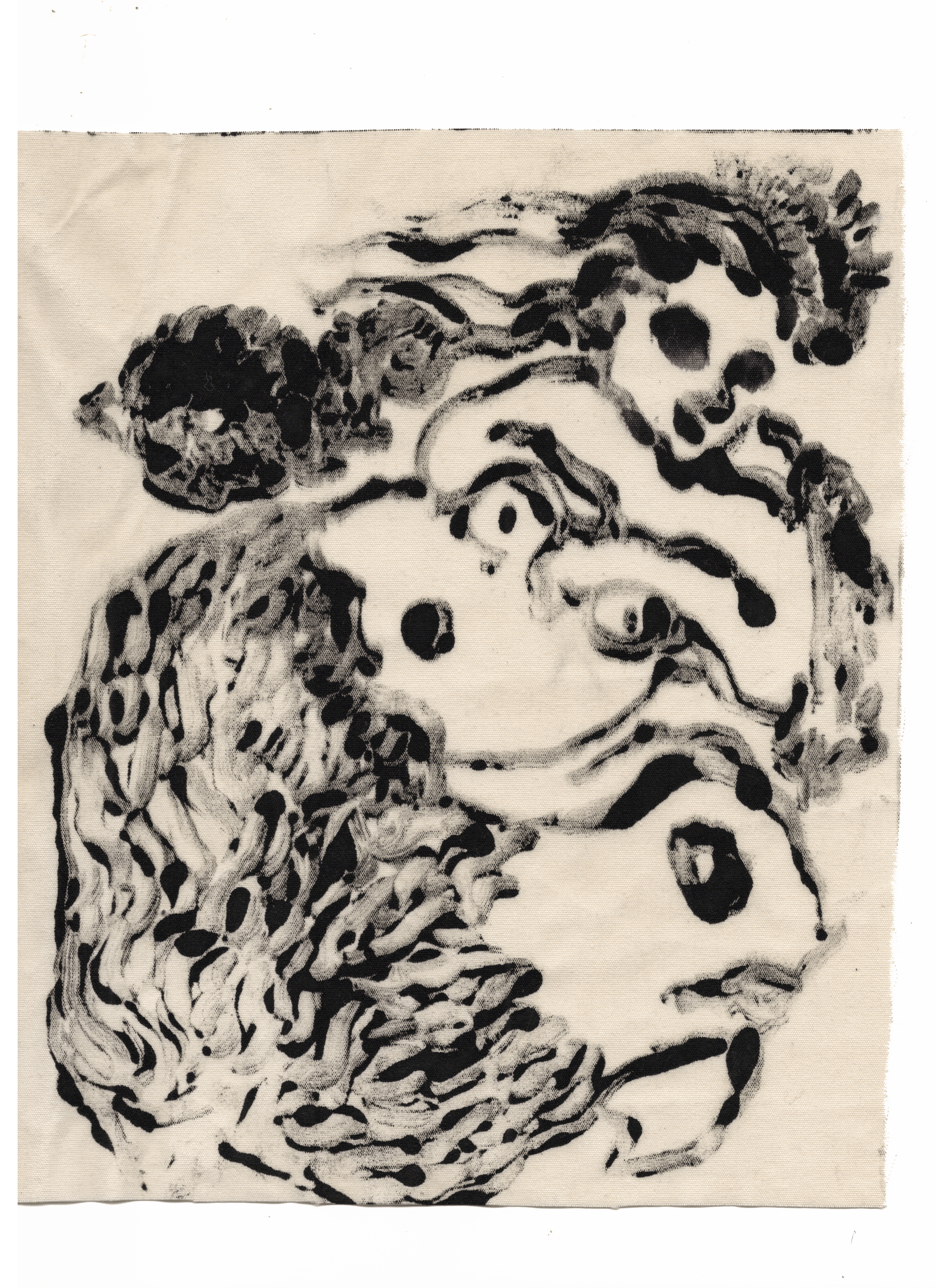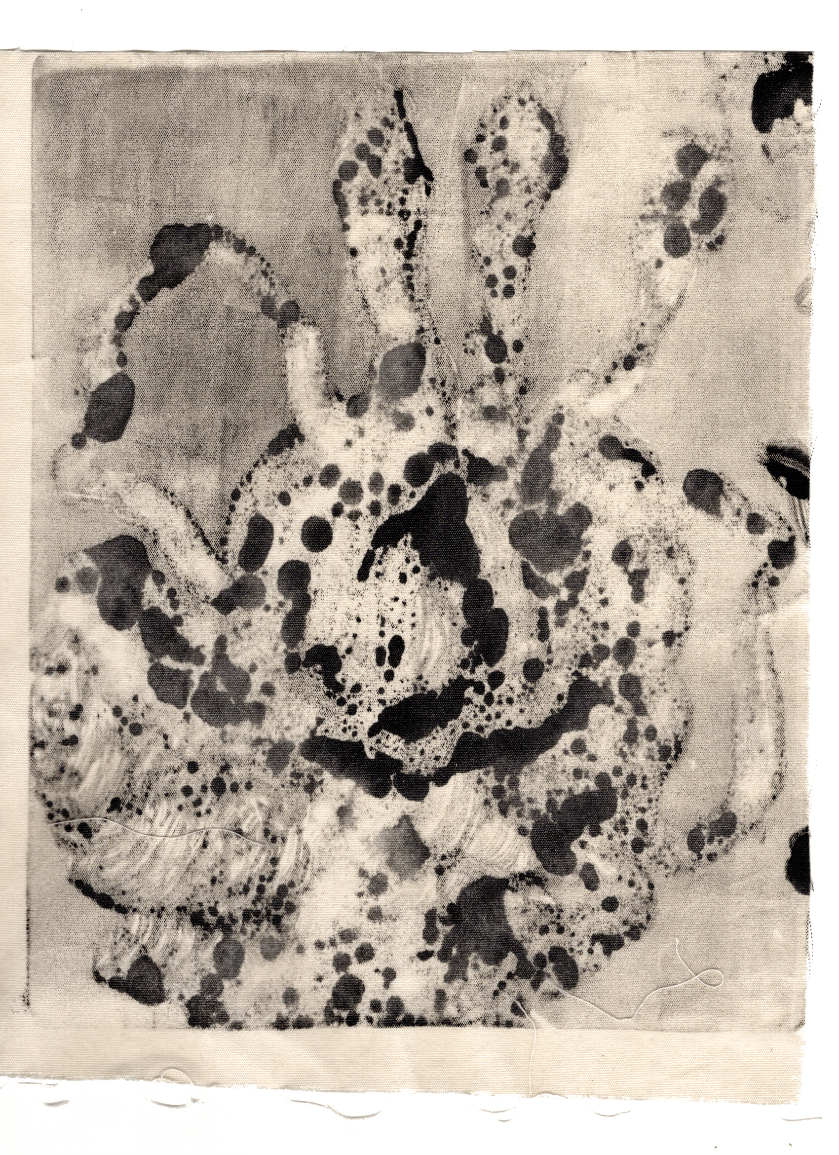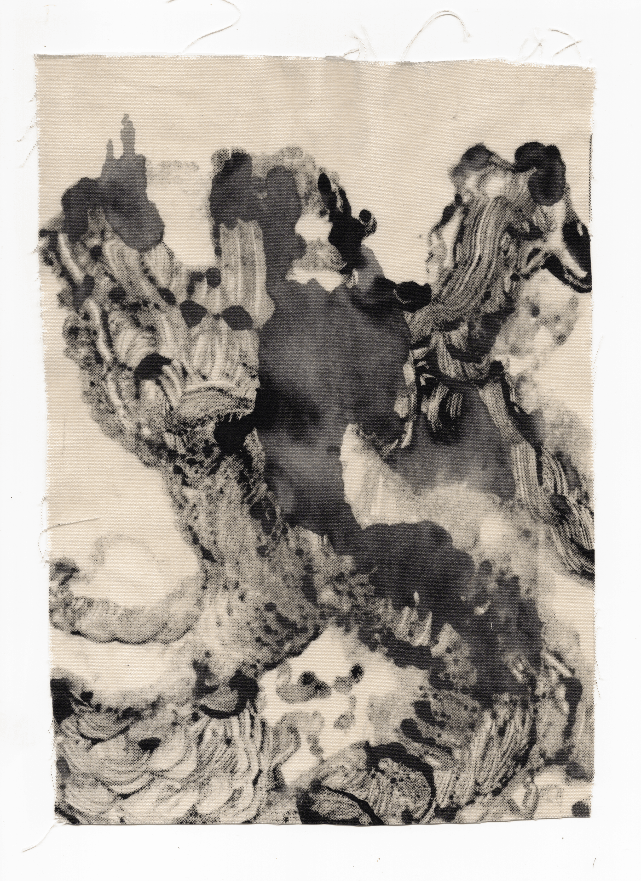 Serie "Monsters", Recent work in process, monotypes on textile, 21x24 cm